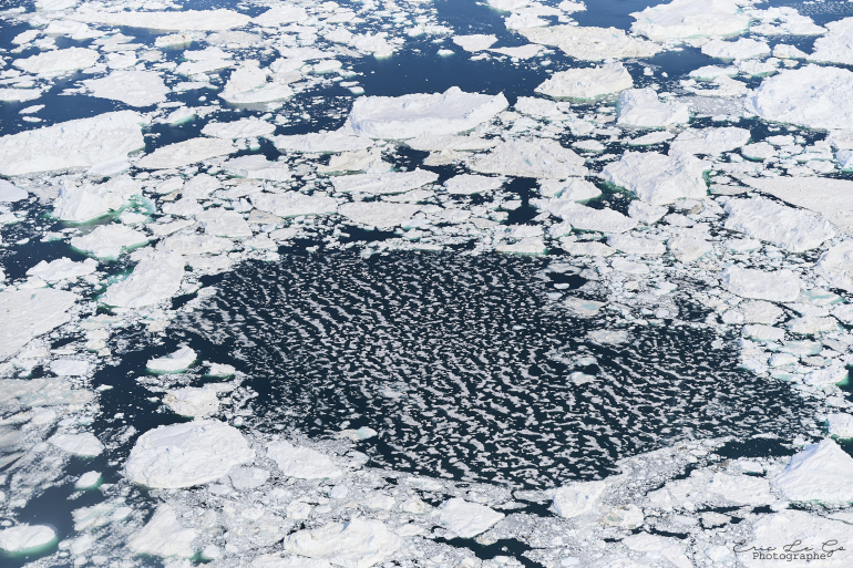 Ils dérivent dans la baie jusqu'à l'entrée du port d'Ilulissat et même parfois dans le port ...