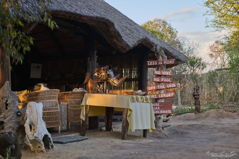 Il s'agit d'un des derniers camps à l'ancienne, pas de WiFi, pas d'électricité dans les chambres (mais de l'électricité pour recharger les batteries dans la partie commune) et bien sûr pas de clôtures, c'est l'assurance de voir passer des éléphants et d'autres animaux dans le camp ...